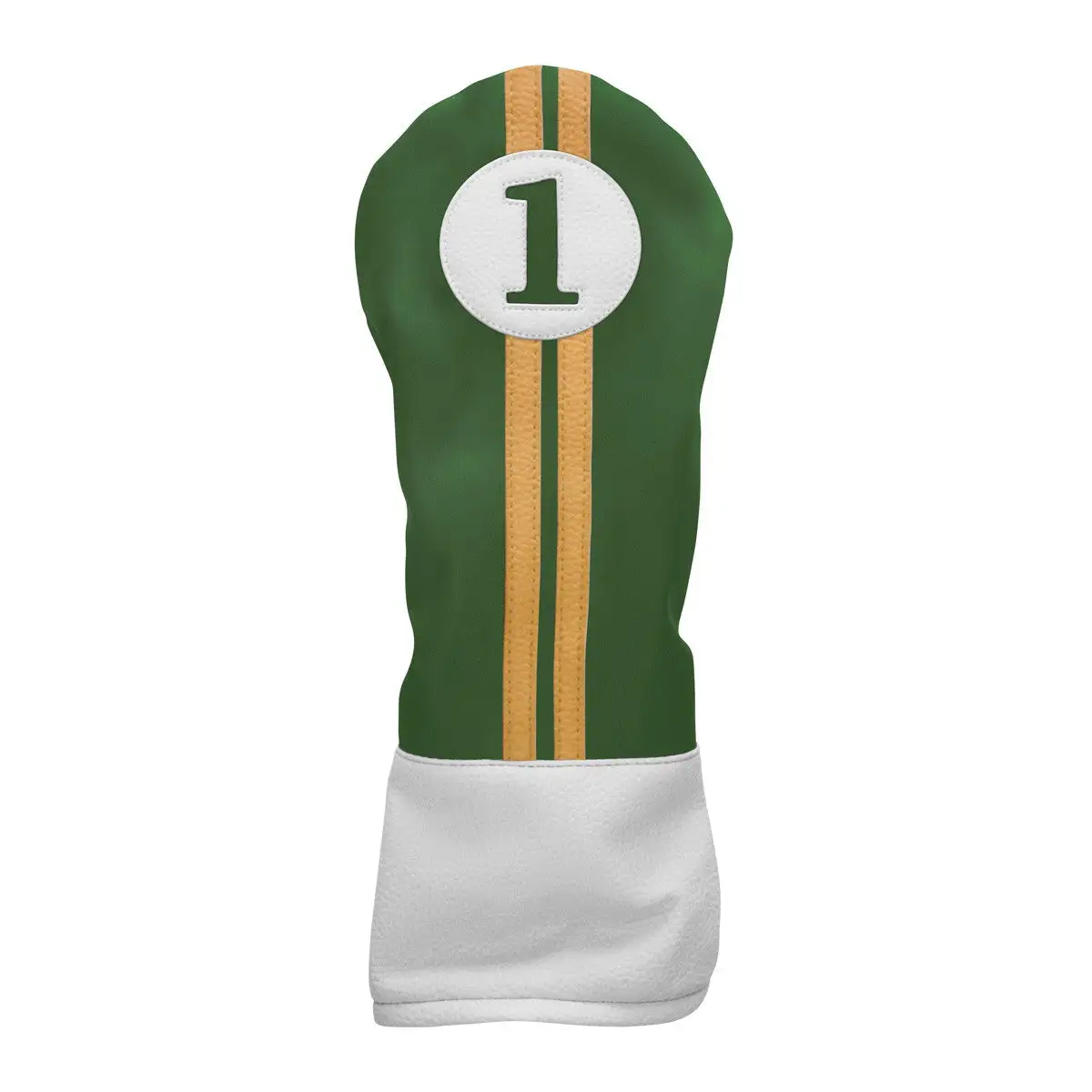 These retro or vintage style headcovers are constructed from foam-backed polyurethane, which looks like leather and provides maximum protection. Form-fitting design available as an individual driver (fits up to 520cc), fairways (3, 5 and X) as well as an H (hybrid or Rescue) feature racing strips on front and plain in the back.