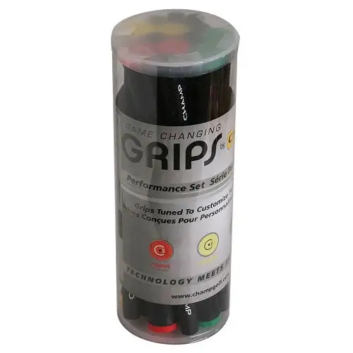 The C8 Performance Set has been designed to offer the golfer a complete set of 13 grips that all have a specific benefit for your golf clubs. Champ has split the 13 grips into POWER, CONTROL and FEEL. The POWER grips are made from TPO/Tacky/Kevlar/Anti Shock, have a firm feel and are designed for the driver, 3/5 woods and hybrids. The CONTROL grips are made from TPO/Tacky/Anti Shock, have a medium feel and are designed for the low to mid irons. The FEEL grips are made from TPO/Tacky and have a soft feel, and are designed for the high irons and wedges. The Ultimate Performance Set is available with 13 Jet Black or Cool White grips. This performance set offers a custom grip collection at a value price.