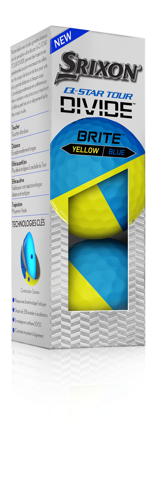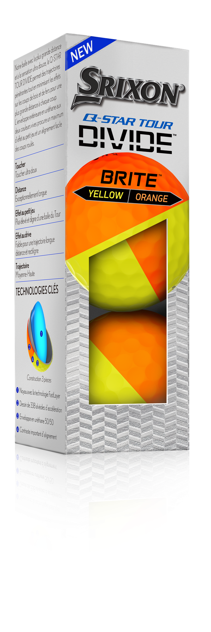 The new Q-STAR TOUR DIVIDE is a performer, through and through. Unlike painted golf balls, DIVIDE’s entire thermoplastic urethane cover is infused with bright pigments, so the color won’t scratch or tear. Plus, that premium urethane adds spin for plenty of control around the greens.
