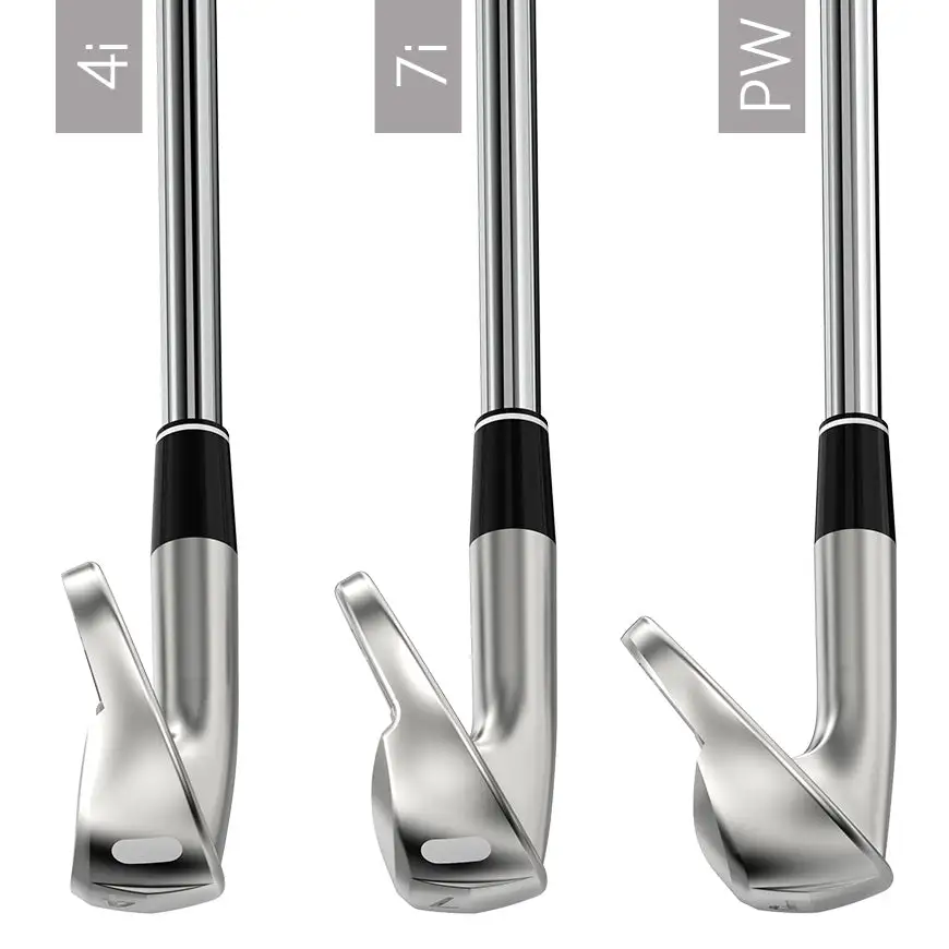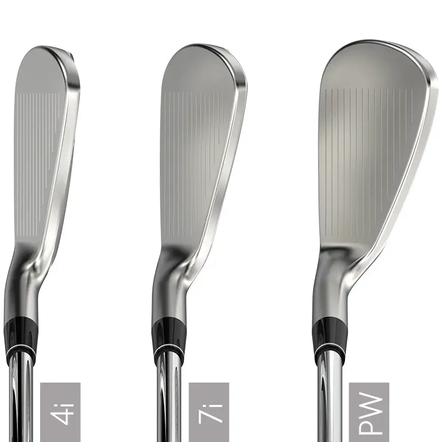 Grooves in the 8i through PW are sharper, narrower, and deeper for more spin and stopping power on approach shots into the green.