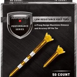 Tee up for your next round of golf with the Maxfli® 1.25” Golf Tees Pack. The small, compact design is perfect if you prefer your tee closer to the ground and wooden construction maximize performance. The yellow-colored design makes it easy to find in the green after you swing for an ace. This assortment comes with 50 tees, perfect for lasting you through multiple golf outings.