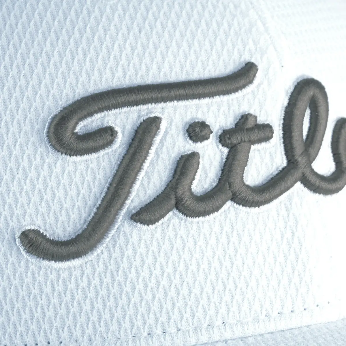 Titleist Tour Elite fitted caps feature a breathable diamond mesh material, temperature regulating front panel, antimicrobial to reduce odor, moisture-wicking sweatband and a standard curve.