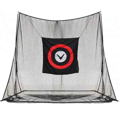 Set up your own range and practice at home with the Callaway 10′ Base Hitting Net! The large 10′ wide x 8′ high hitting area will support all your full swing training needs for every club in your bag.. The BASE Hitting Net is engineered with premium netting, reinforced fiberglass framing and a sturdy stainless steel pole base. It’s rated to catch ball speeds up to 190 mph which covers even the highest swing speeds.. The hanging target helps sharpen your focus and aim, and cradles each shot for easier ball retrieval. Assembly is fast and easy; set up and take down in 10 minutes. The net is free-standing for indoor use, and includes metal ground stakes for max stability outdoors. Use the provided nylon carry case for portability and storage.