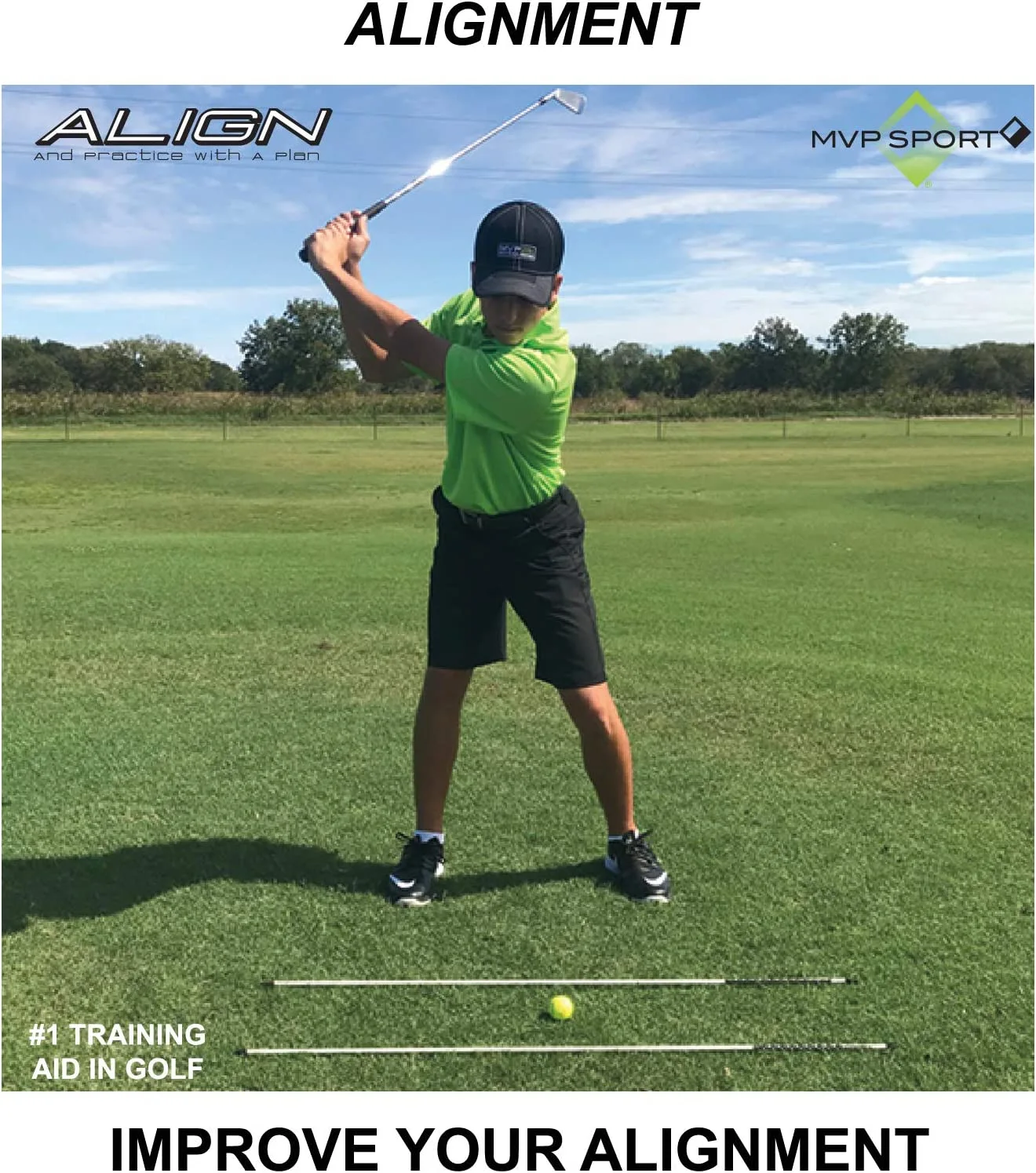 44″ fiberglass golf alignment rod 2-pack. Includes 2 alignment rods and drills. Rods are made with a protective cap to protect equipment and a sharp end. Great for improving alignment, ball position, swing plane, shot shaping and short game. Easy to practice drills included!