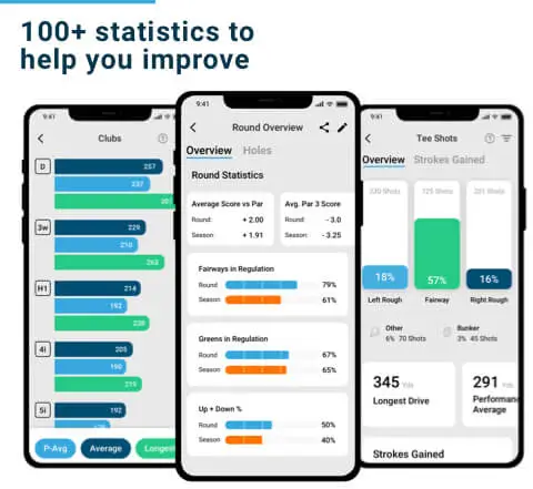 Access over 100 statistics on your Clubs, Tee Shots, Approaches, Short Game and Putting via the free mobile app or web dashboard. The mobile app provides a great summary of statistics, whereas the dashboard allows more in-depth analysis.