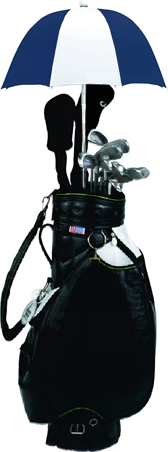 Elevated ribs protect clubs and umbrella frame – Non-slip handle with engraved logo – 100% nylon cover